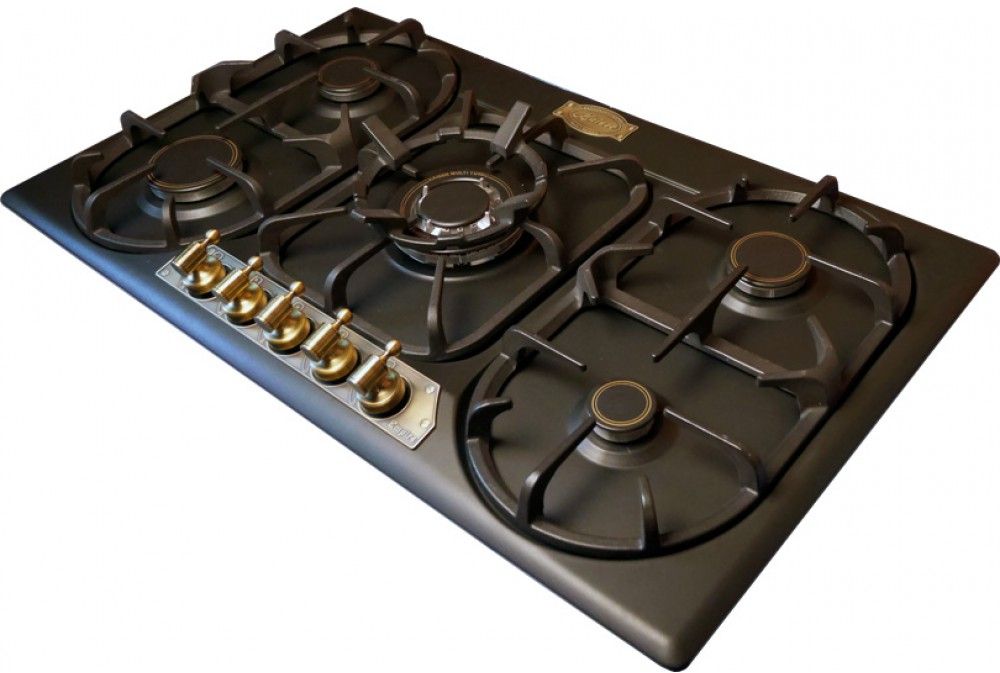 Описание конфорок 1 х Ø13,0 см Турбо горелка с Вок адаптером (3,8 кВт) 1 х Ø 9,0 см большая горелка (3,0 кВт) 2 х Ø 6,5 см нормальная горелка (1,75 кВт) 1 х Ø4,0 см экономичная горелка (3,5 кВт)